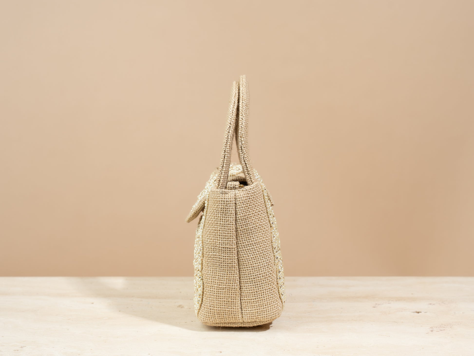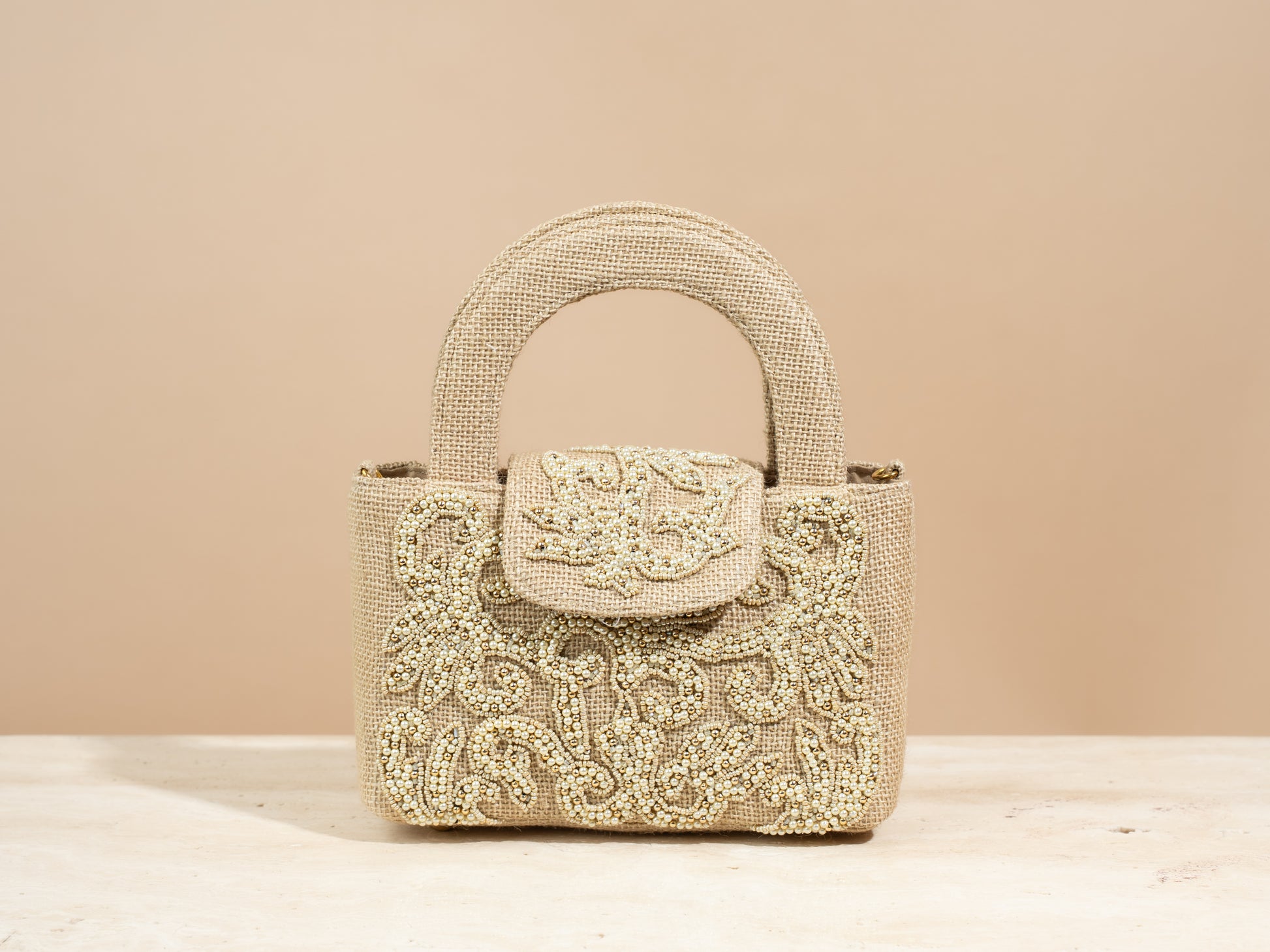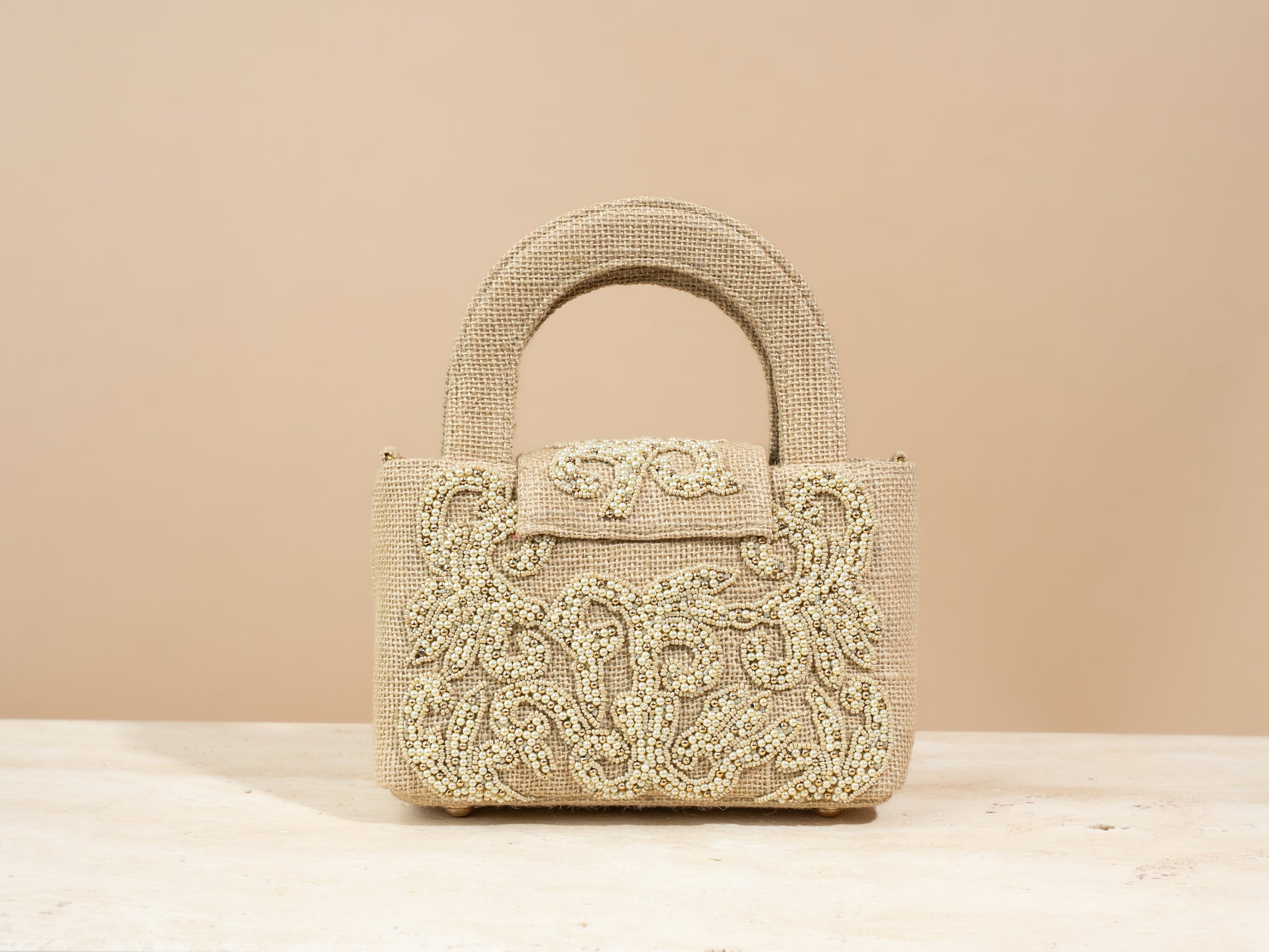 مصنوعة من قماش الجوت الأسود المفضل لدينا، مطرزة من الأمام والخلف بنمط جميل من أوراق الشجر والزهور بخيوط سوداء باستخدام تقنيات تطريز يدوي متنوعة. تعكس هذه الحقيبة أناقةً في كل عنصر، وتتميز بمساحة داخلية واسعة وجيب داخلي مفتوح لتنظيم أغراضك الأساسية. تأتي الحقيبة الصغيرة بمقبض حمل، وزر إغلاق، وسلسلة معدنية قابلة للفصل. كما تأتي كل حقيبة مع كيس غبار من الكتان.