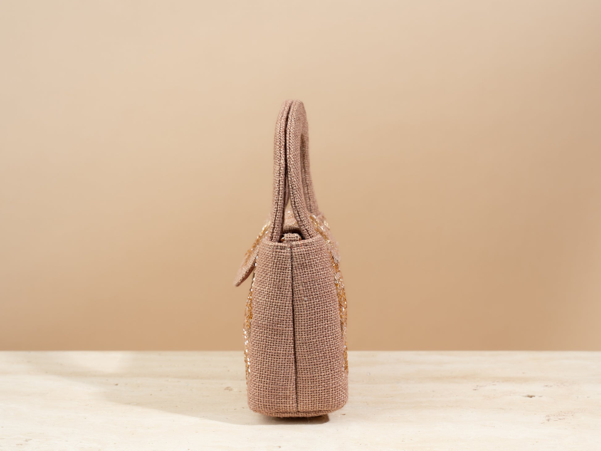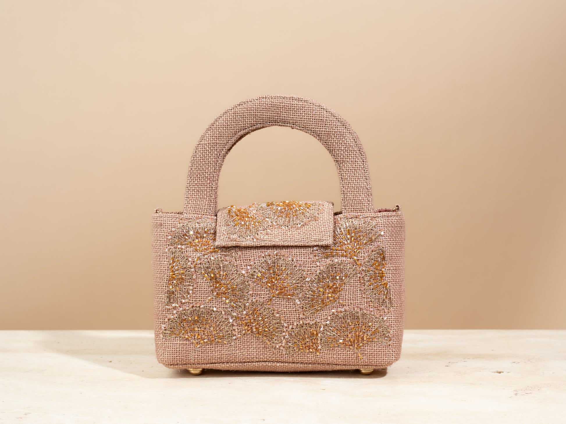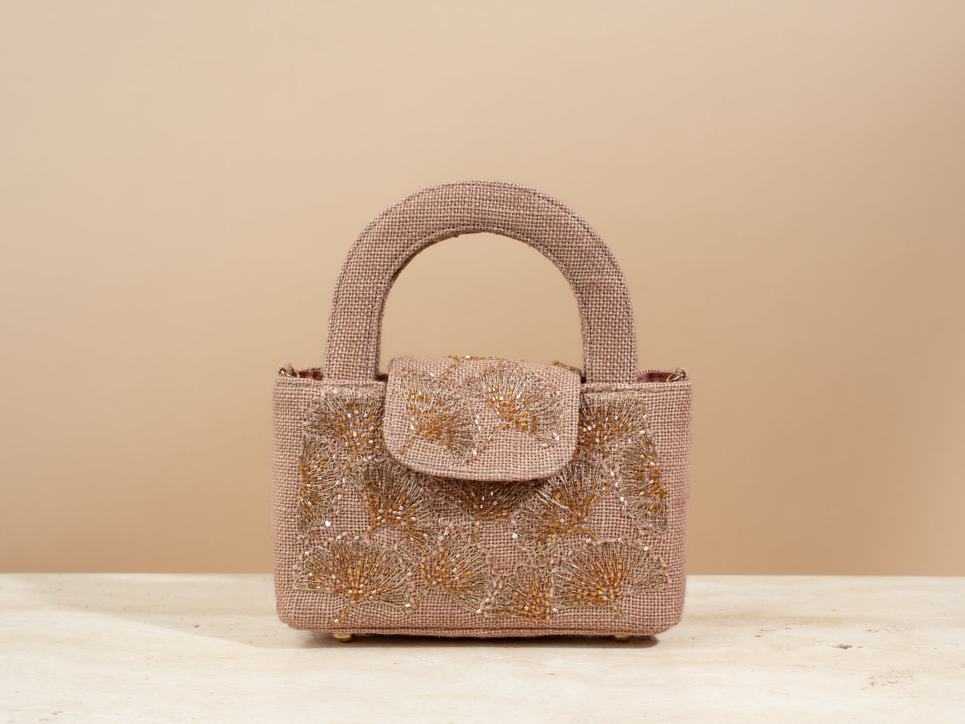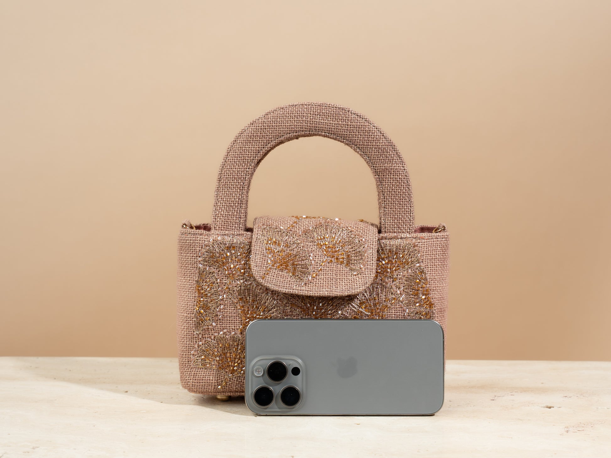 .The mini flap bag comes with a tote handle , a closing button , and a detachable metal chain .Every bag comes with a linen dustbag as well