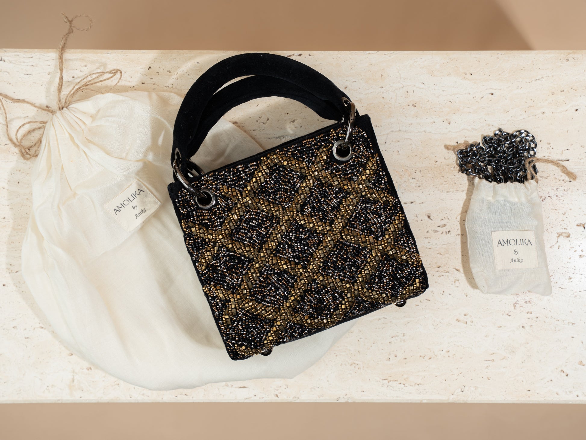 All Amolika bags come in our signature Amolika box