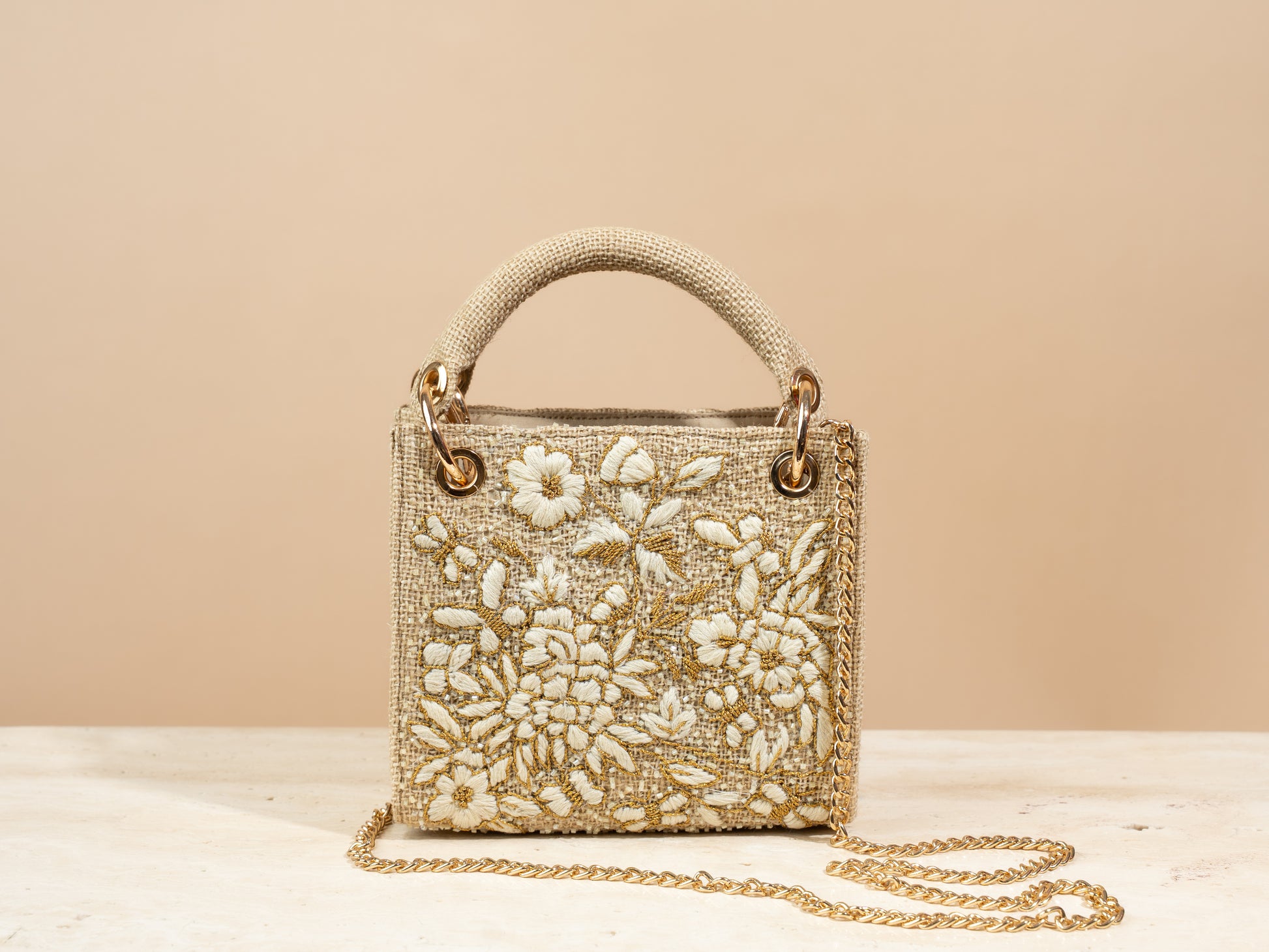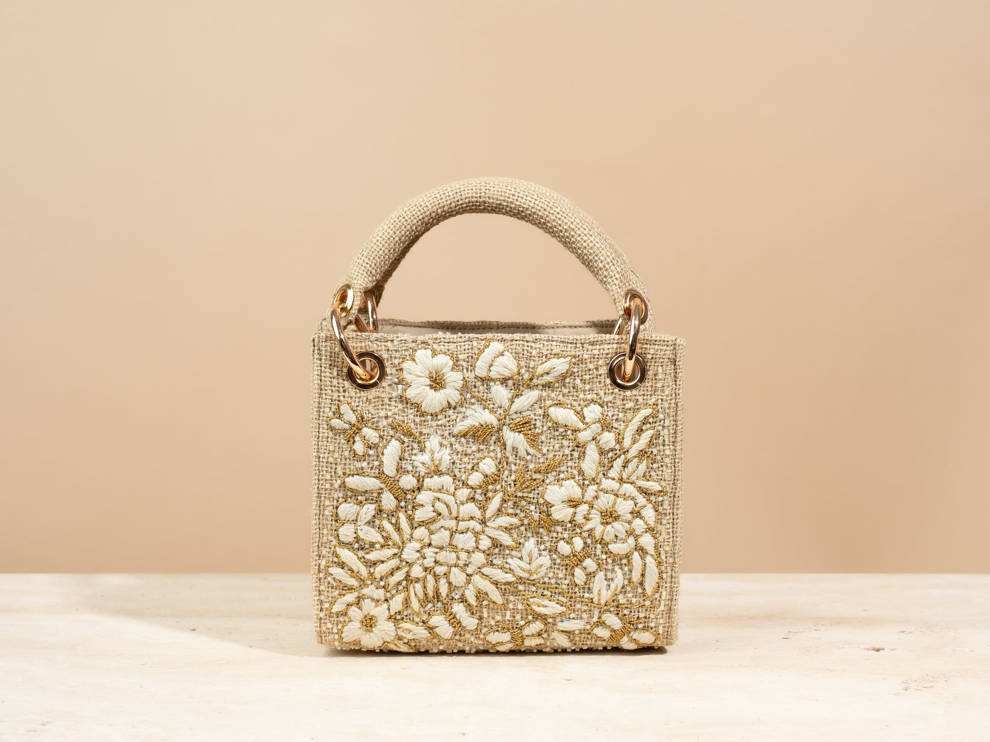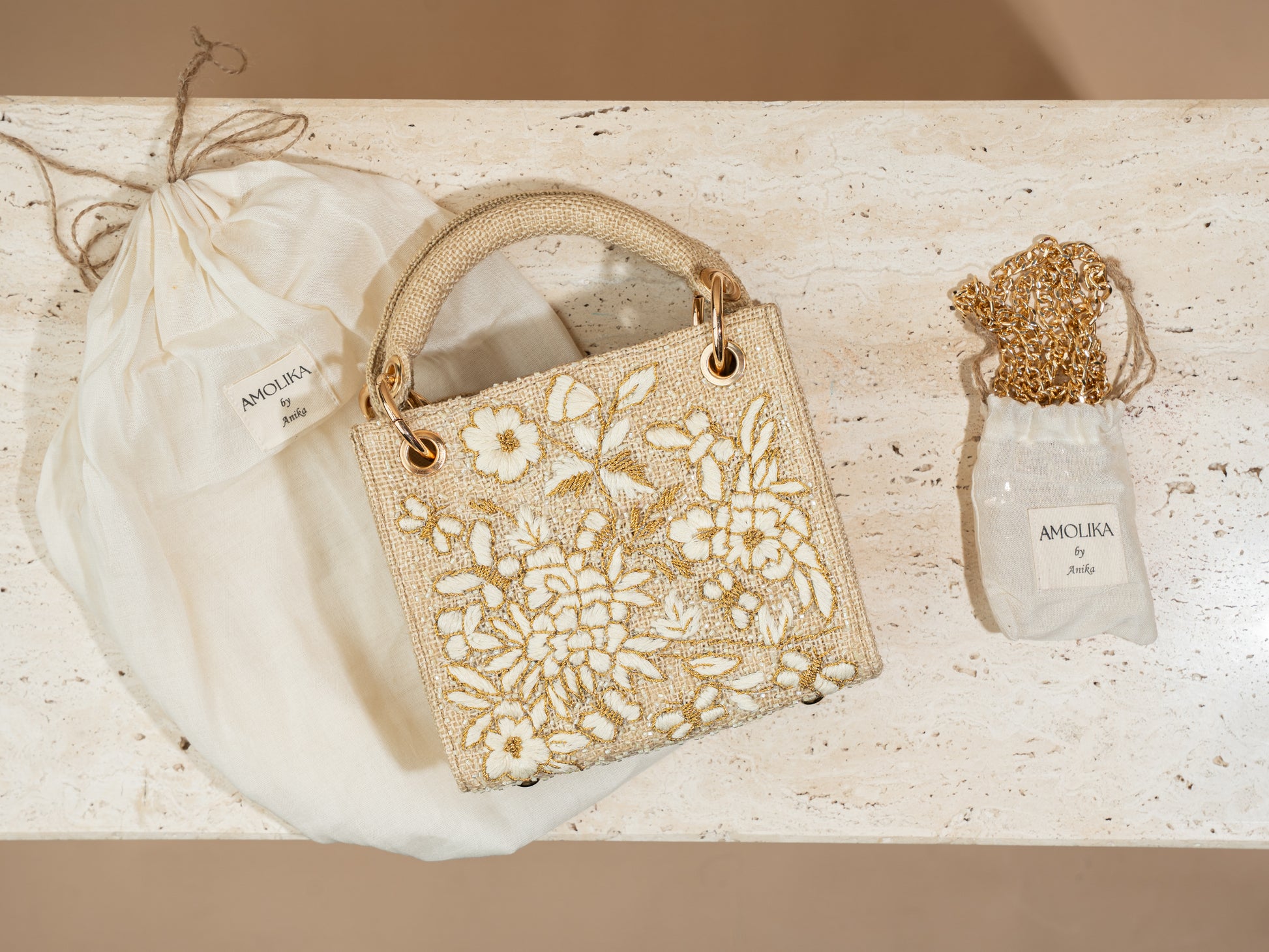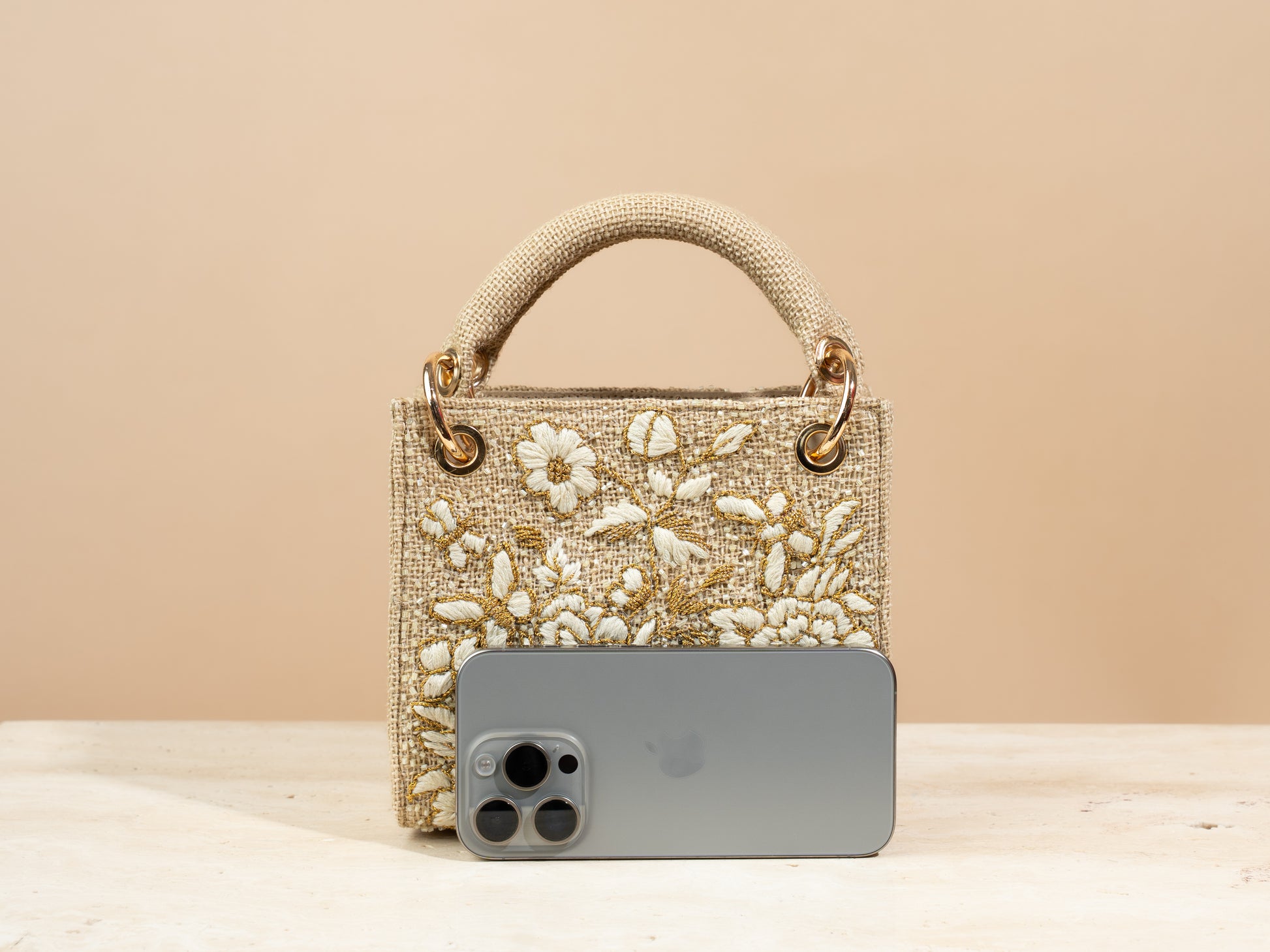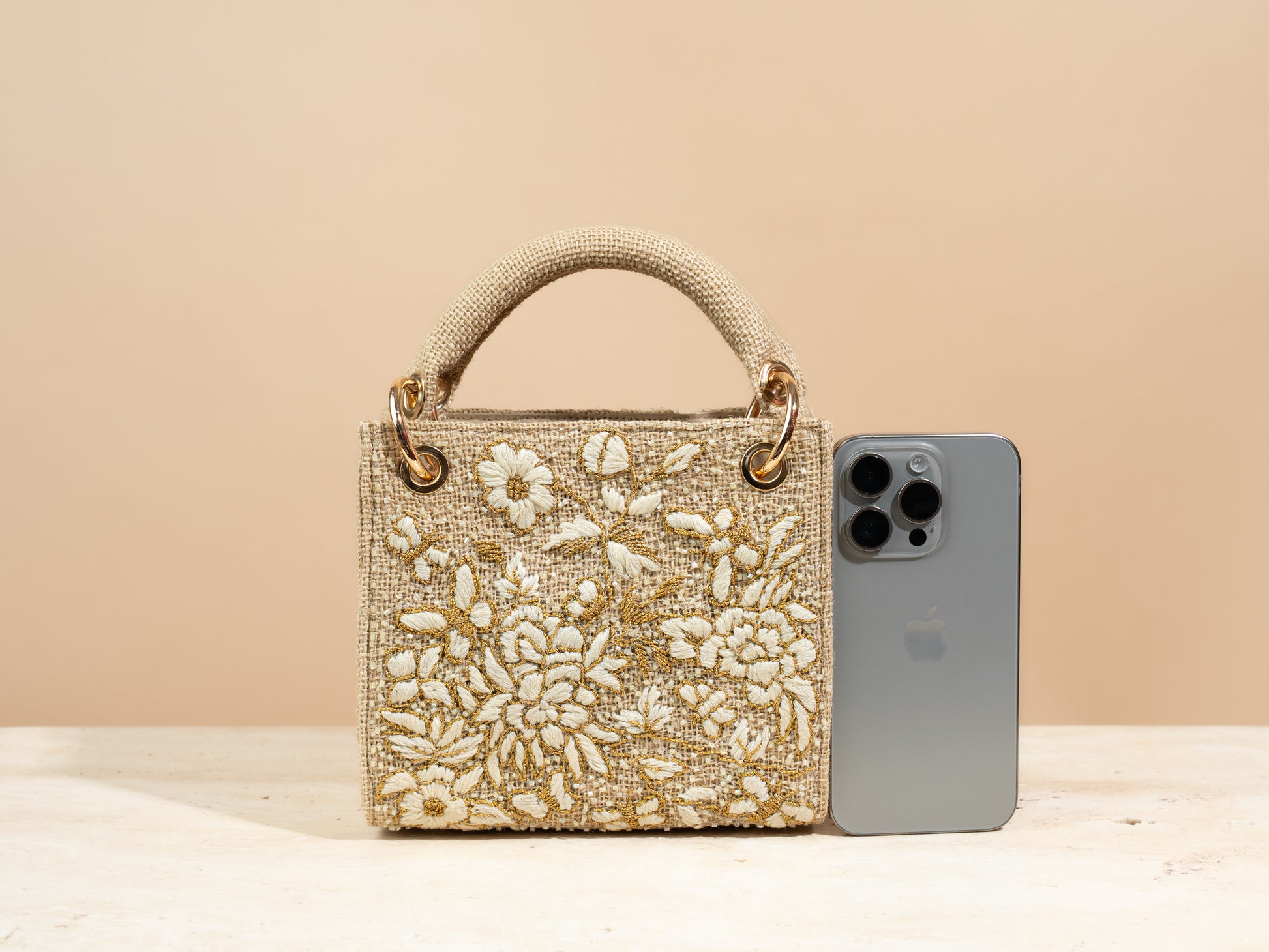 Safa is designed for moments of calm and connection. Its soft ivory base and delicate floral embroidery feel gentle and uplifting, making it perfect for daytime Ramadan gatherings and graceful Eid mornings. A bag that feels light, serene, and quietly special.